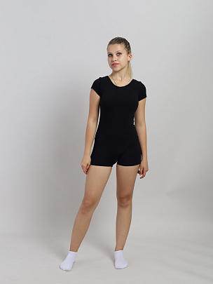 Купальник гимнастический с длинным рукавом. Вырез горловины и проймы ножек окантованы бейкой из основного полотна.