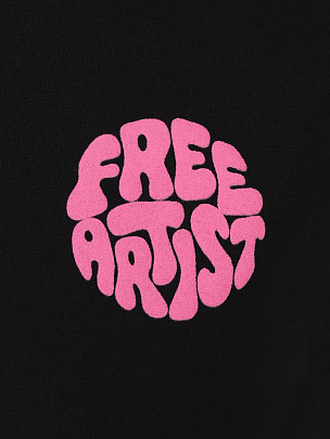 Стильный костюм оверсайз (свободный крой) состоит из 2-х предметов: укороченный свитшот и брюки-палаццо. Свитшот декорирован ярким объемным пафф-принтом "Свободный художник". Брюки-палаццо с завышенной талией и расклешенные снизу. Элементы костюма можно носить как самостоятельные вещи.