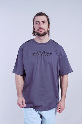 Футболка прямого силуэта длиной по линию бедер. Короткий рукав. Круглая горловина обработана узкой притачной обтачкой из рибаны с эластаном. Полочка декорирована принтом "единственный экземпляр".