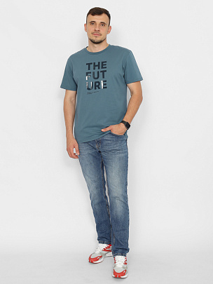 Футболка мужская из кулирной глади. С коротким рукавом. Воротник из эластичной рибаны. На полочке принт (будущее).