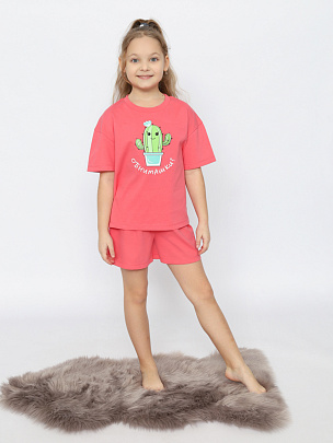 (222) Комплект для девочки (платье типа "туника", бриджи) светло-розов