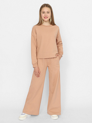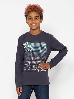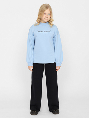 Джемпер для девочки с модным принтом на спинке и нашивкой на рукаве (надпись: "Улыбнись. Настоящий друг всегда в твоем сердце"). Крой оверсайз с заниженной линией плеча, не сковывает движения, позволяя ребенку быть активным. Модель дополнена круглым вырезом горловины и длинными рукавами. Воротник и манжеты выполнены из полотна с эластаном. В боковых швах по низу изделия разрезы.