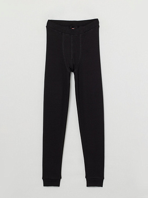 Кальсоны из рибаны с эластаном и начесом с изнаночной стороны, с клиновидными вставками спереди. Притачной пояс и манжеты по низу ножек выполнены из рибаны с эластаном. В пояс вставлена резинка. Кальсоны без боковых швов.