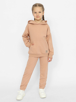 Костюм из футера худи и джоггеры для девочки. Брюки-джоггеры и худи с капюшоном и карманом-кенгуру - удобная и универсальная повседневная одежда, для сада, для занятий спортом. Худи с капюшоном свободного силуэта, карманом-кенгуру, пояс и манжеты из трикотажного полотна кашкорсе, которые надежно облегают запястье ребенка. На кармане декоративная нашивная этикетка с надписью - "Никогда не переставай мечтать". Брюки свободного силуэта, с манжетами из футера и резинкой в поясе. Спортивный костюм...