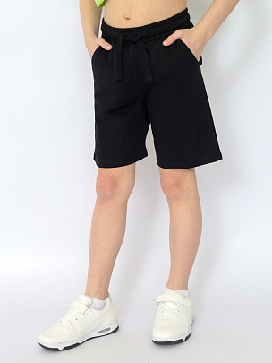 Шорты для мальчика с боковыми карманами и притачным поясом из основного полотна. В пояс вставлена резинка и функциональный шнур.